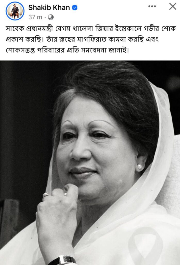 খালেদা জিয়ার মৃত্যুতে শাকিব খানের শোক |