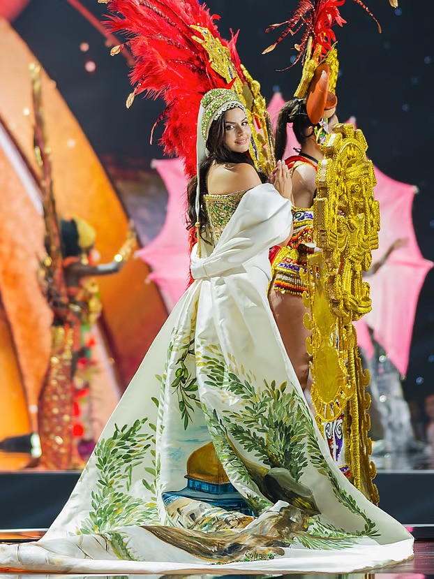 এবারের ৭৪তম মিস ইউনিভার্সে প্রথমবারের মতো অংশ নিয়েছে ফিলিস্তিন। ১২০ জন প্রতিযোগির সাথে প্রতিদ্বন্দ্বীতা করছেন নাদিন আইয়ুব। বুধবার জাতীয় পোশাক বিভাগে মঞ্চে উঠেছিলেন তিনি। সেখানে ফিলিস্তিনের ঐতিহ্যবাহী ‘শাতওয়া’ মাথার মুকুট পরেছেন। গাউনে ছিল ফিলিস্তিনের শান্তির প্রতীক হিসেবে জলপাইগাছের মোটিফ। এই পোশাকেই মিস ইউনিভার্স আসরকে আবেগে-ইতিহাসে ভাসালেন ফিলিস্তিনী নাদিন ।