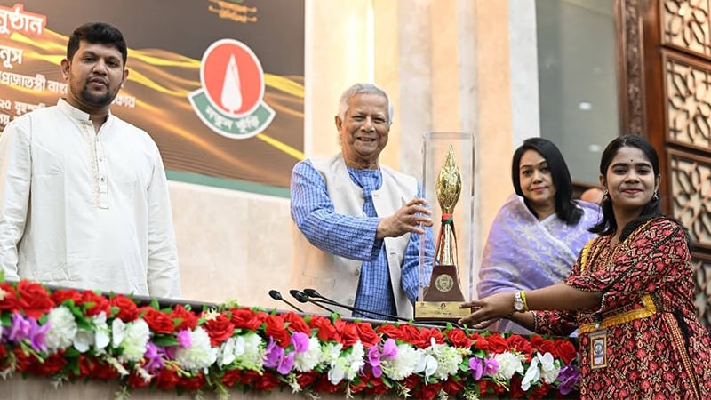 বৃহস্পতিবার প্রধান উপদেষ্টা ‘ক’ ও ‘খ’ গ্রুপের সেরা দুই বিজয়ীর হাতে পুরস্কার তুলে দেন। ‘ক’ গ্রুপে টাঙ্গাইল জেলার প্রেয়সী চক্রবর্তী এবং ‘খ’ গ্রুপে সুনামগঞ্জ জেলার শুভ মিতা তালুকদার চ্যাম্পিয়ন হয়। তারা প্রত্যেকে একটি ক্রেস্ট ও তিন লাখ টাকার চেক গ্রহণ করে।