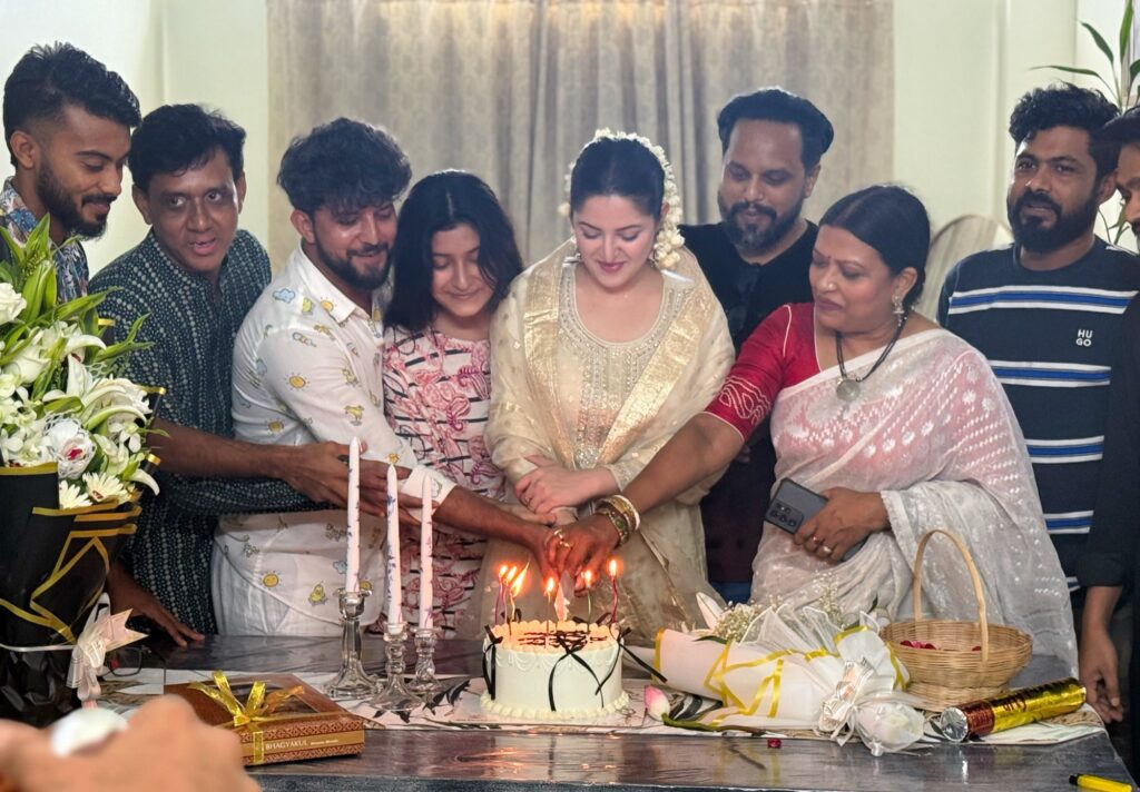 পরীমনি জন্মদিনের কেক কাটলেন মেকআপ আর্টিস্টের সাথে