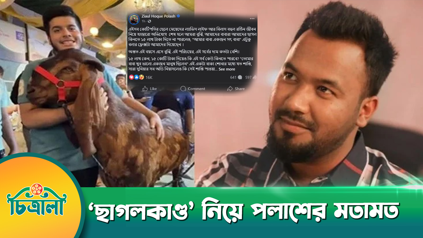 ২০২৪ সালের ঈদুল আজহায় আলোচনার কেন্দ্রবিন্দুতে ছিল মুশফিকুর রহমান ইফাতের ‘ছাগলকাণ্ড’। এ প্রসঙ্গে সম্প্রতি নিজের মতামত প্রকাশ করেছেন ছোটপর্দার দর্শকপ্রিয় অভিনেতা জিয়াউল হক পলাশ।